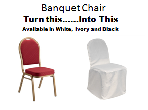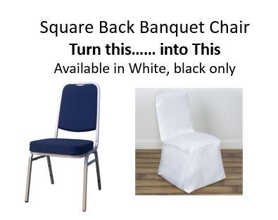 We offer four different kinds of chair covers which will fit 99% of chair styles in event centers. If your chair doesn't look like one of the four below, please send me a picture of the chair you are trying to cover and I will do my best to find a chair cover to make it happen. -